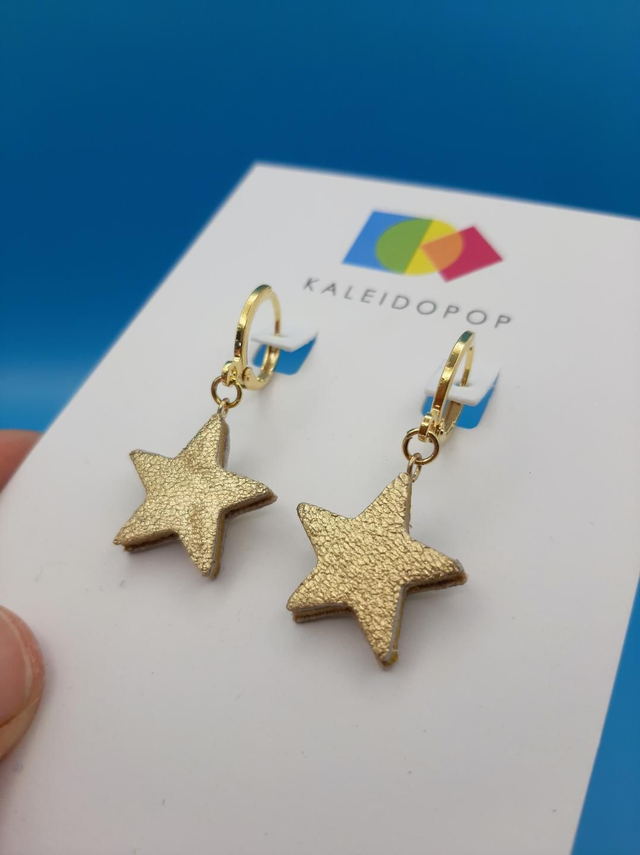 Dimensions: hoops are 14mm in diameter. Leather star motif is approximately 20mm wide and 18mm length.
